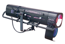 1200-Watt follow spotlight with zoom, 7deg / 14.5deg, with stand.